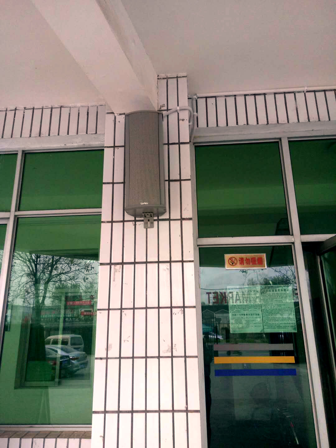 3、系統(tǒng)要求采用定壓傳輸方式。室外區(qū)域要求安裝高級(jí)室外防雨型音柱。