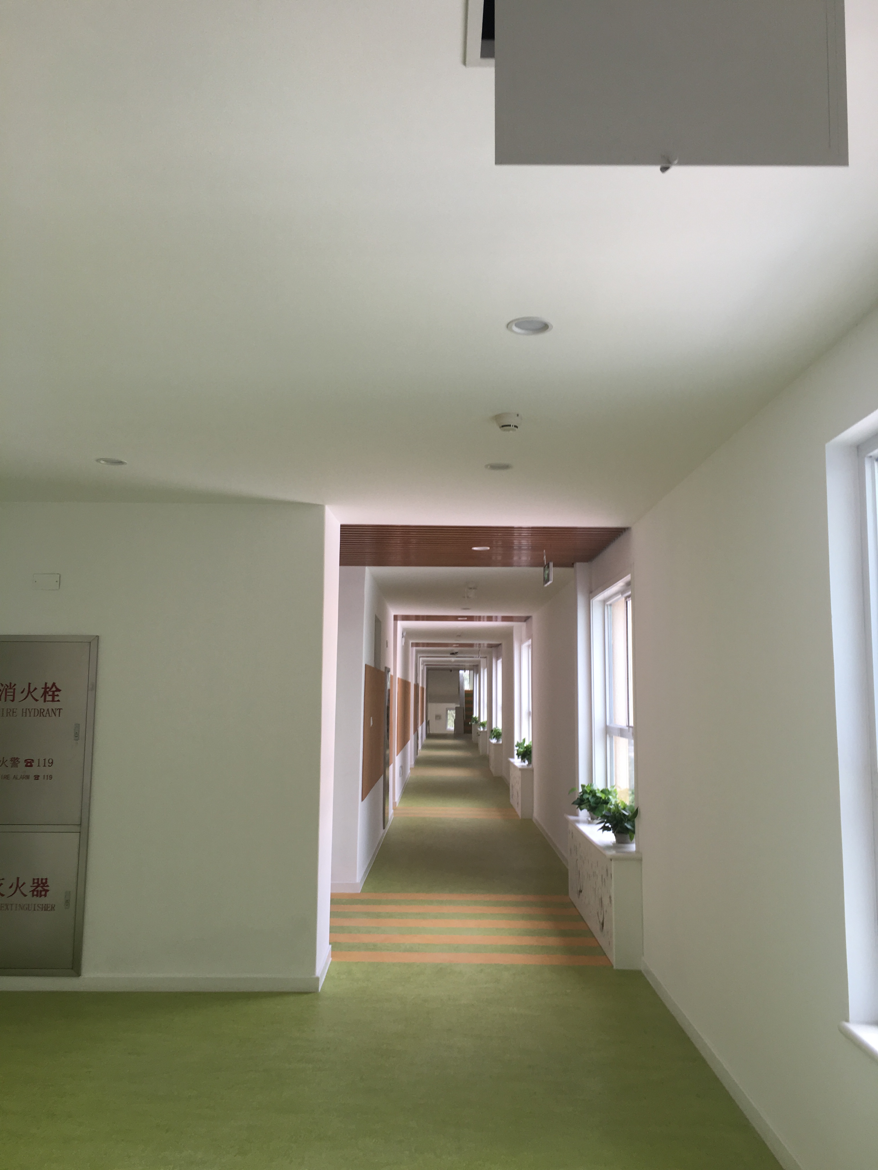 北京師范大學(xué)實驗幼兒園中每個教室和走廊采用了有源吸頂揚聲器平均分布的安裝方式,負(fù)責(zé)全場區(qū)域的聲音覆蓋,吸頂揚聲器可以很好的對聽音區(qū)實現(xiàn)覆蓋,通過處理器內(nèi)均衡、延時、壓限等功能的設(shè)置,可以將聲場調(diào)試至最佳狀態(tài),使音箱的頻響達(dá)到極佳的效果。通過調(diào)試,室外防水音柱均勻的覆蓋全場,聲壓級、均勻度等指標(biāo)均能達(dá)到標(biāo)準(zhǔn)。