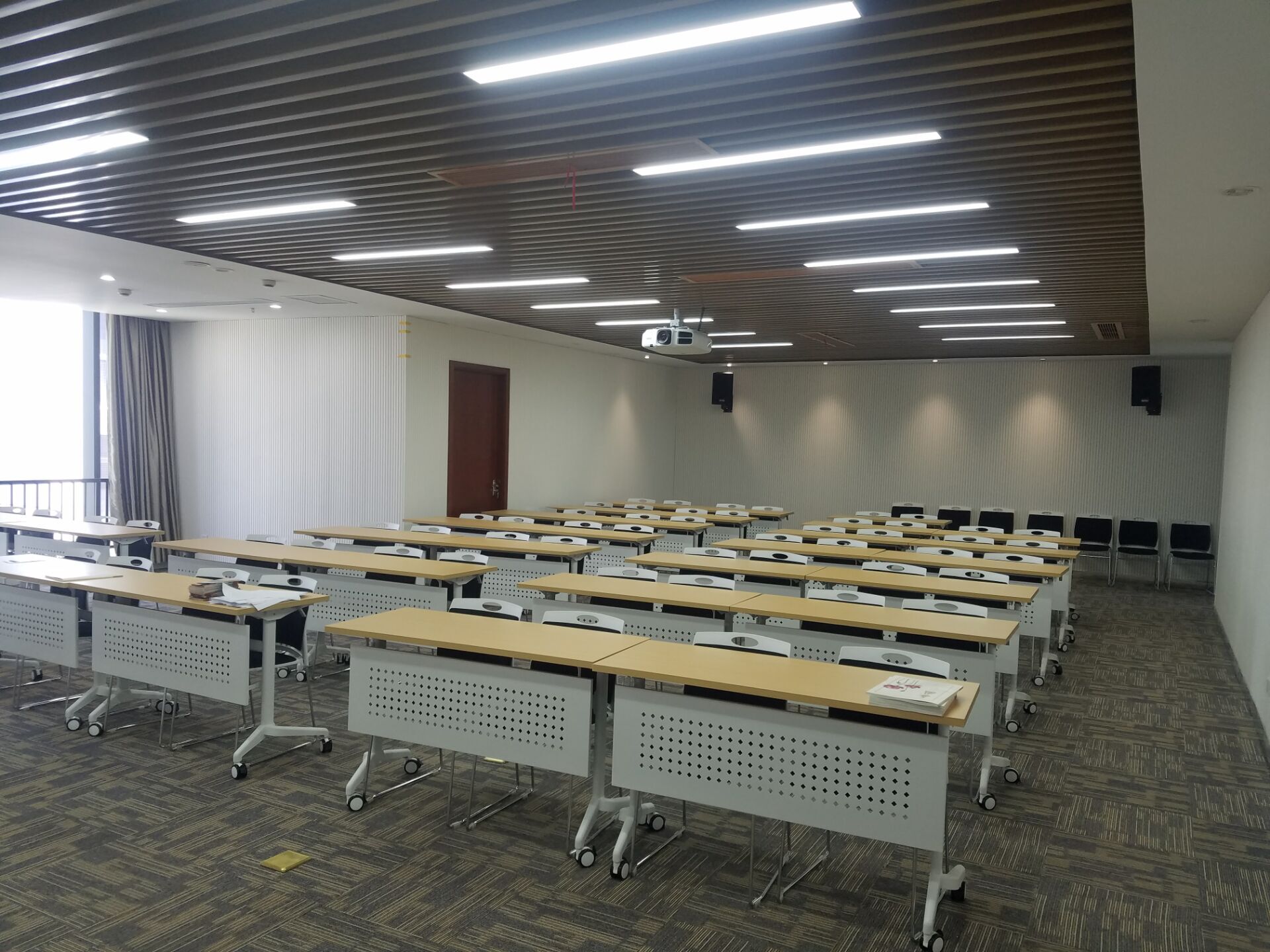 專業(yè)擴聲系統(tǒng)簡單來說就是把聲音信號放大,主要由聲源、音頻處理設(shè)備、功放及揚聲器系統(tǒng)組成。通過計算會議室的音響場地系數(shù)進行設(shè)計,保證會議室每個角落的聲場聽覺均勻,音響效果達到語言清晰、無失真、聲場分布均勻。
