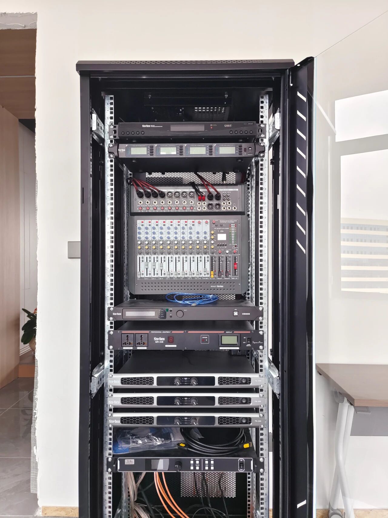 專業(yè)擴(kuò)聲系統(tǒng)簡(jiǎn)單來(lái)說(shuō)就是把聲音信號(hào)放大,主要由聲源、音頻處理設(shè)備、功放及揚(yáng)聲器系統(tǒng)組成。通過(guò)計(jì)算會(huì)議室的音響場(chǎng)地系數(shù)進(jìn)行設(shè)計(jì),保證會(huì)議室每個(gè)角落的聲場(chǎng)聽(tīng)覺(jué)均勻,音響效果達(dá)到語(yǔ)言清晰、無(wú)失真、聲場(chǎng)分布均勻。