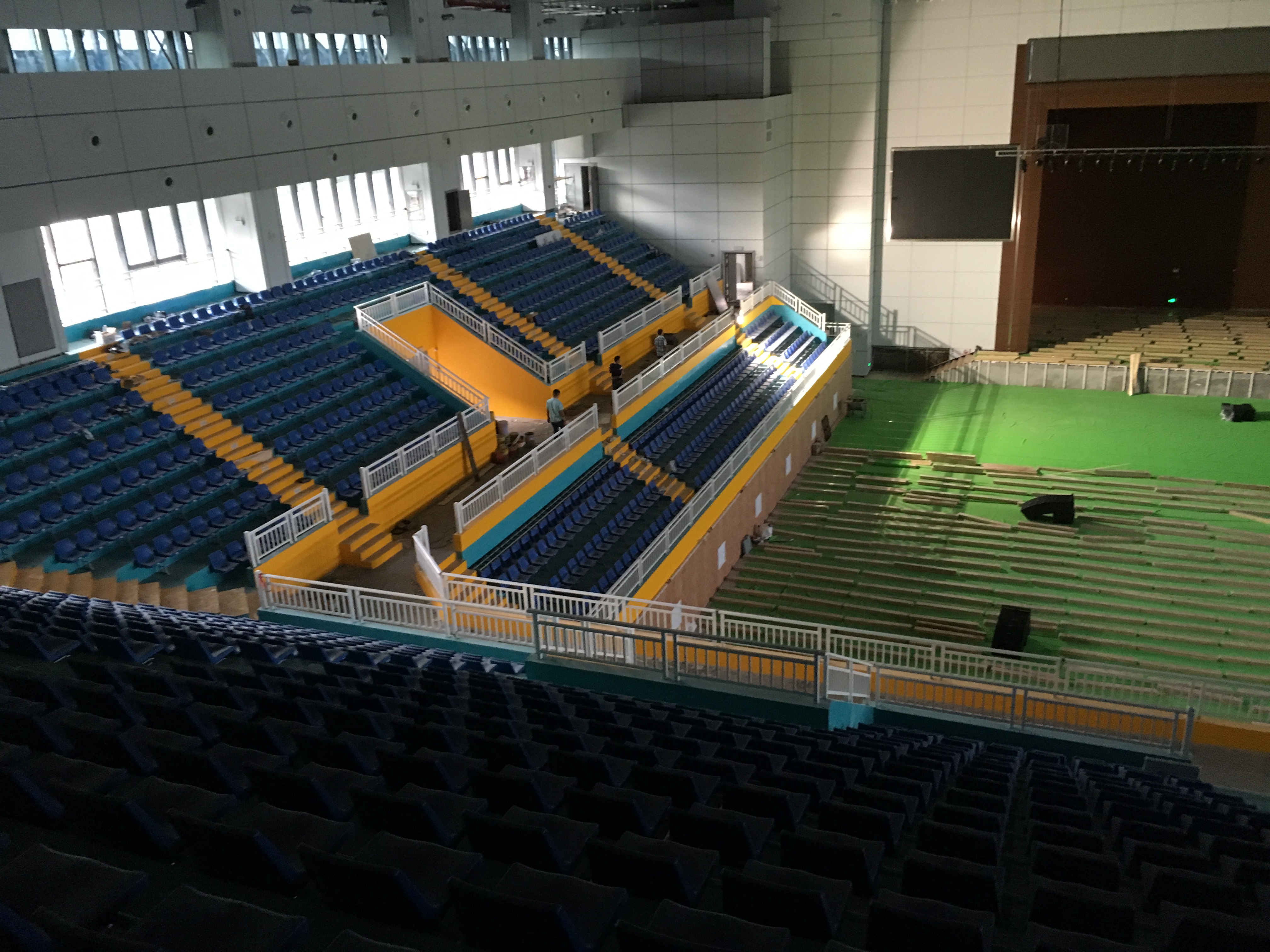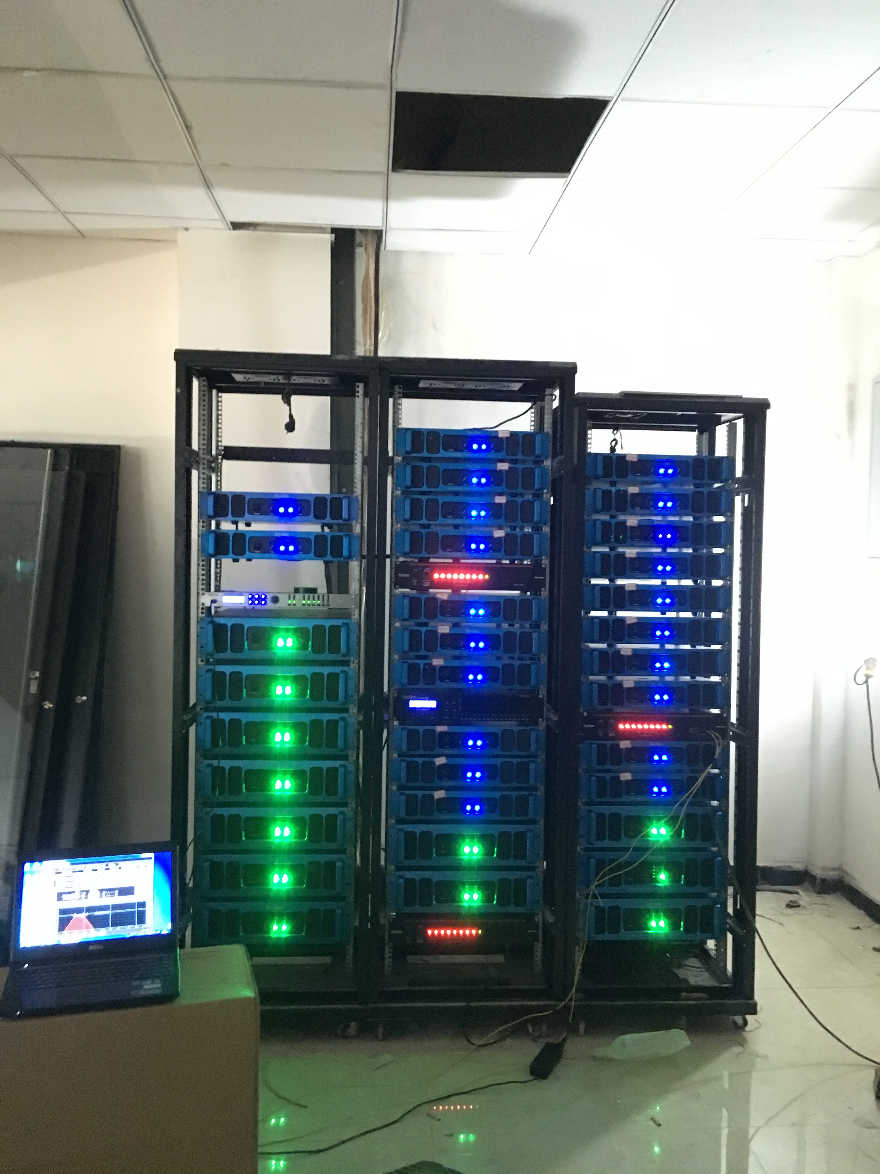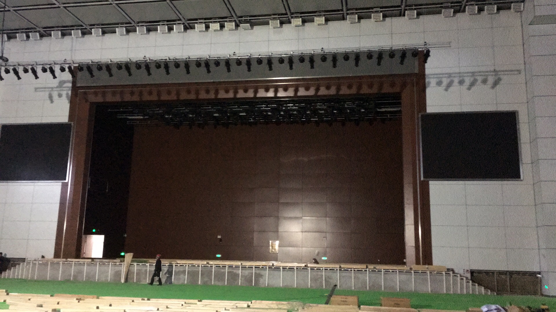 在體育館的左右兩側(cè)分別裝了2只KS-218雙18寸線性陣列-低音炮,16只KS-208雙8寸線性陣列-全頻,10只KS-118線性陣列-低音炮做為主擴系統(tǒng)。